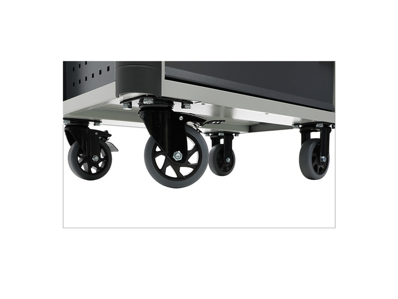 - Перфорированные боковые стенки тележки, позволяющие размещать на них аксессуары (навеску для экранов)